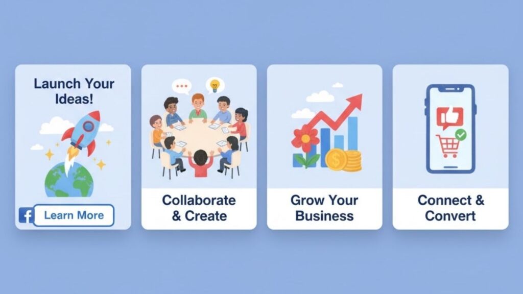 Facebookカルーセル広告とは、1つの広告で複数の画像や動画を表示でき、各カードに個別リンクを設定して直感的に訴求できる広告フォーマットです。