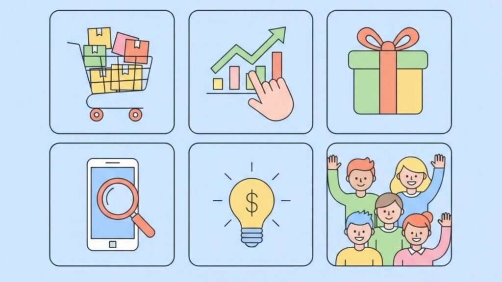 アパレル、化粧品、家具など、商品バリエーションが豊富な業種では特に効果的です。