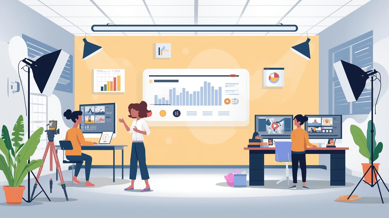 内製化を成功させるためには、制作した動画の効果測定と改善サイクルを確立することが欠かせません。YouTubeアナリティクスで視聴回数、視聴維持率、エンゲージメント率、登録者増加などを定期的に分析し、どのコンテンツが視聴者に響いているかを把握します。